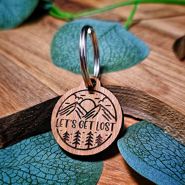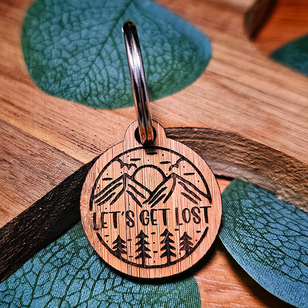 “Lets Get Lost” Wooden Dog Tag is a cute, stylish addition to your dogs wardrobe for exploring.